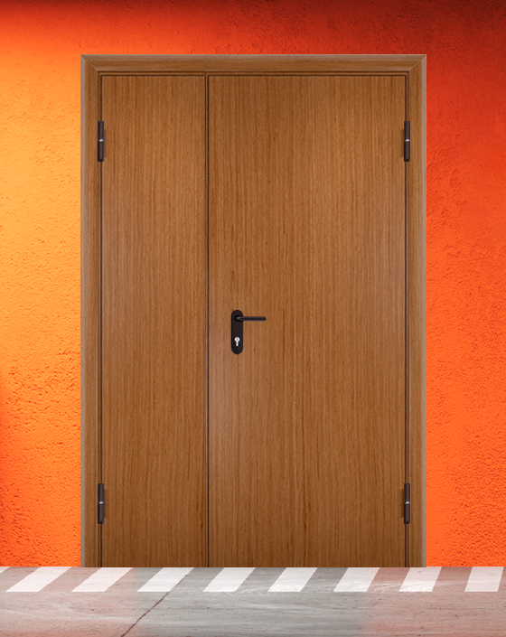 Специализированная полуторная дверь противопожарного назначения класса EI 30 в стандартной цветовом решении.