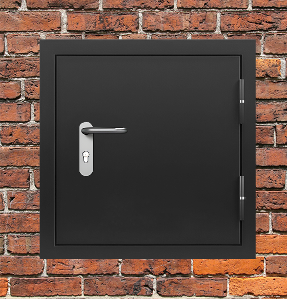 Специализированное решение люк металлический черный с блестящей ручкой для комплексного обеспечения требований пожарной безопасности.