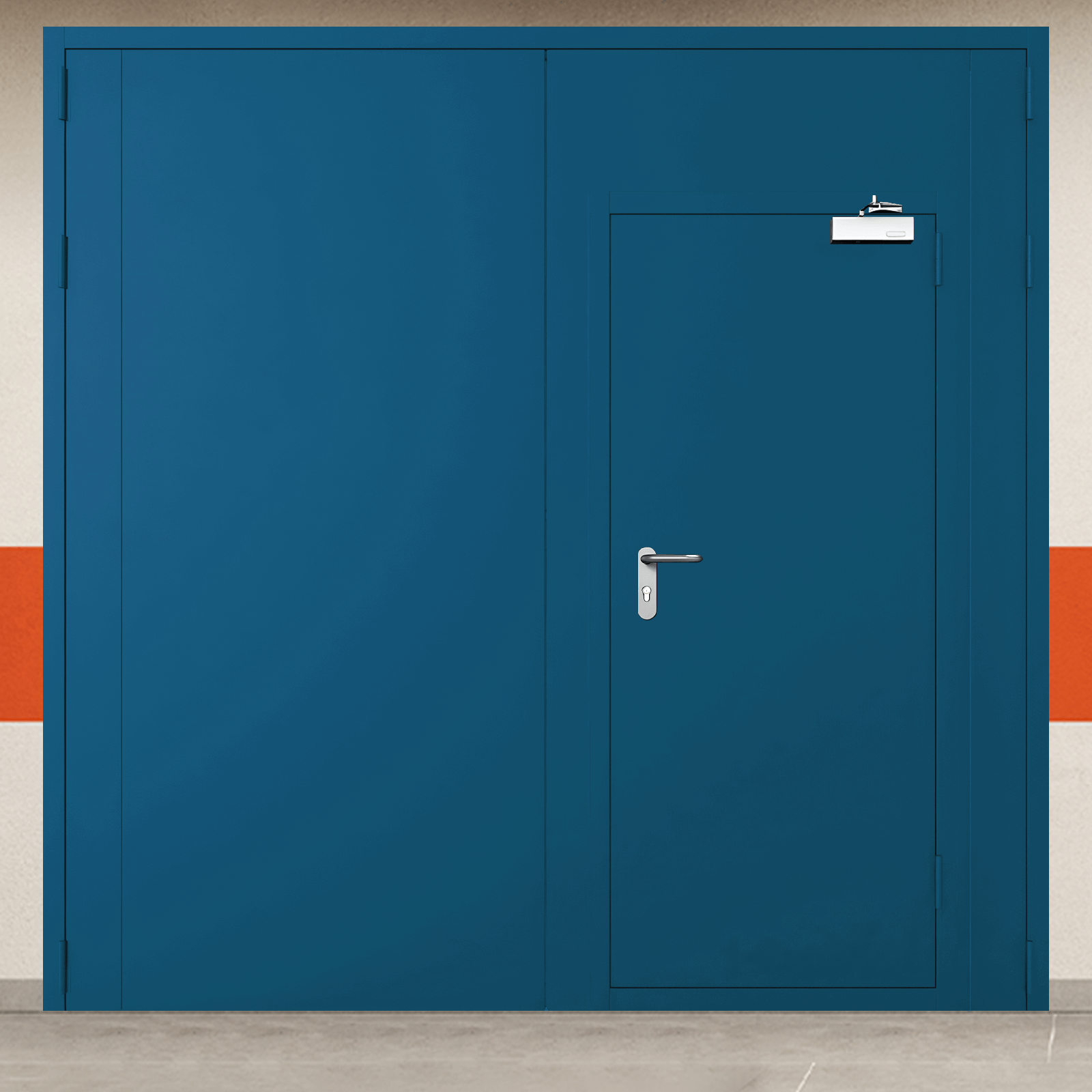 Сертифицированная полуторная противопожарная дверь EI 30 в стандартной исполнении предназначена для обеспечения безопасности эвакуационных путей.